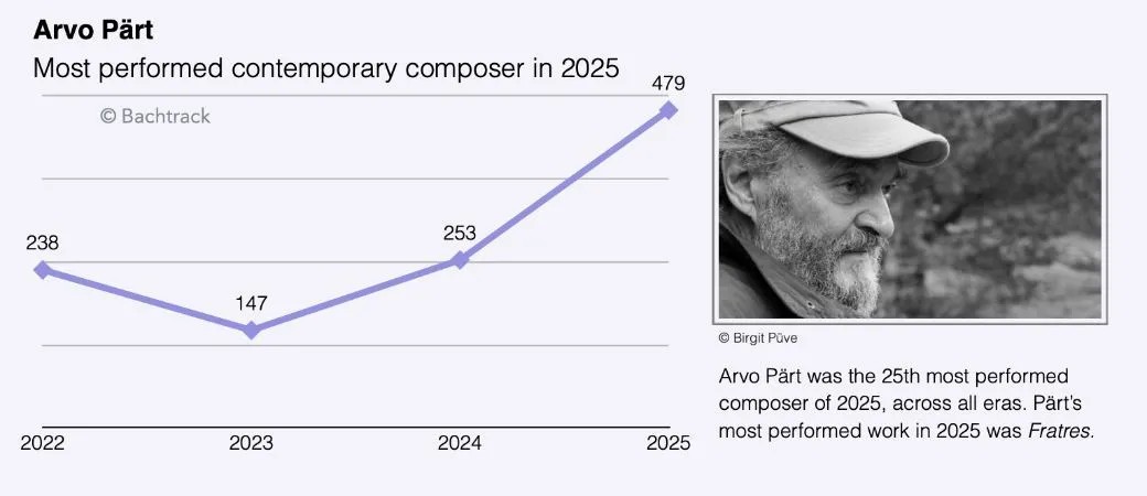 Arvo Pärt’s most performed work in 2025 was “Fratres”.
