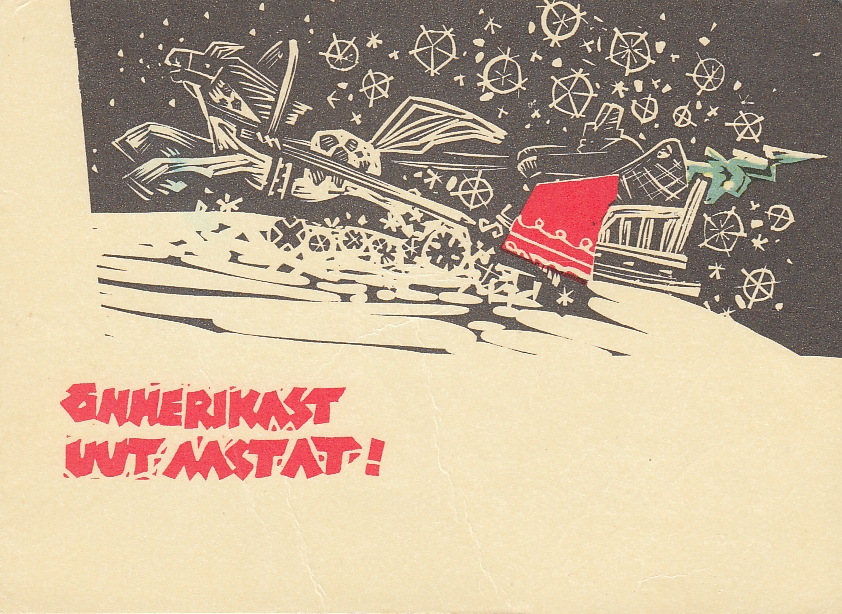 Literature slipped in too – including works by Anton Hansen Tammsaare, whose Truth and Justice appeared on cards officially intended to mark the New Year. A Soviet-era Estonian New Year’s card from the 1970s.
