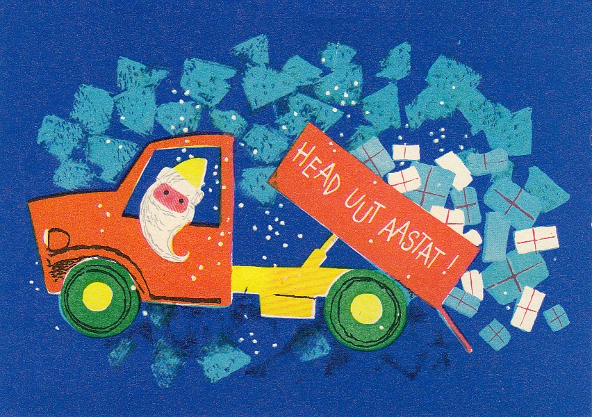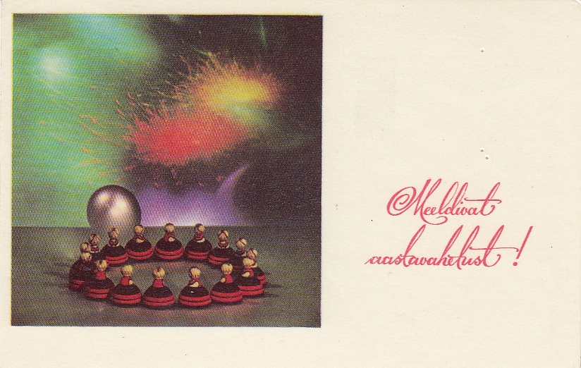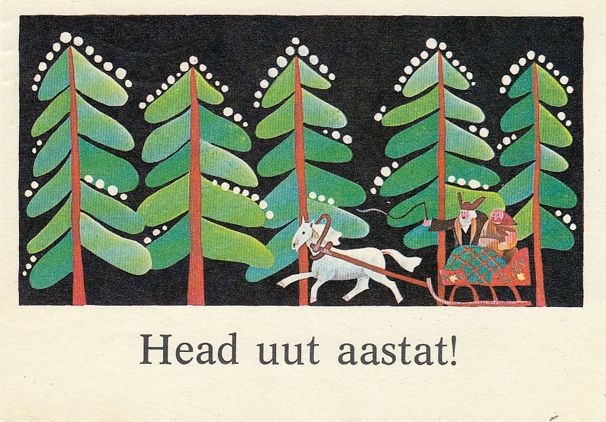 A Soviet-era Estonian New Year’s card from the 1980s.A Soviet-era Estonian New Year’s card from 1967. Artist: Lilian Härm.A Soviet-era Estonian New Year’s card from the 1960s.A Soviet-era Estonian New Year’s card from the 1980s.A Soviet-era Estonian New Year’s card from the 1980s.A Soviet-era Estonian New Year’s card from the 1970s.A Soviet-era Estonian New Year’s card from the 1970s.A Soviet-era Estonian New Year’s card from the 1980s.A Soviet-era Estonian New Year’s card from the 1970s.A Soviet-era Estonian New Year’s card from the 1980s.A vintage Estonian New Year’s card from 1910.A Soviet-era Estonian New Year’s card from the 1980s.A Soviet-era Estonian New Year’s card from the 1940s.A Soviet-era Estonian New Year’s card from the 1970s.A Soviet-era Estonian New Year’s card from the 1960s.A Soviet-era Estonian New Year’s card from the 1970s.A Soviet-era Estonian New Year’s card from the 1980s.A Soviet-era Estonian New Year’s card from the 1960s.A Soviet-era Estonian New Year’s card from the 1960s.A Soviet-era Estonian New Year’s card from the 1960s.A Soviet-era Estonian New Year’s card from the 1980s.A Soviet-era Estonian New Year’s card from 1961. Artist: Hugo Mitt.A Soviet-era Estonian New Year’s card from 1958. Artist: Silvi Väljal.A Soviet-era Estonian New Year’s card from the 1980s.A Soviet-era Estonian New Year’s card from the 1980s.A Soviet-era Estonian New Year’s card from the 1970s. The card reads: “Work joy for the year ahead!”A Soviet-era Estonian New Year’s card from the 1960s.A Soviet-era Estonian New Year’s card from the 1980s.A vintage Estonian New Year’s card from the 1930s.A Soviet-era Estonian New Year’s card from the 1980s.A Soviet-era Estonian New Year’s card from the 1960s.A Soviet-era Estonian New Year’s card from the 1980s.A Soviet-era Estonian New Year’s card from the 1960s.A Soviet-era Estonian New Year’s card from the 1940s.A Soviet-era Estonian New Year’s card from the 1960s.A Soviet-era Estonian New Year’s card from the 1980s.A Soviet-era Estonian New Year’s card from the 1980s.A Soviet-era Estonian New Year’s card from the 1970s.A Soviet-era Estonian New Year’s card from the 1970s.A Soviet-era Estonian New Year’s card from 1981. Artist: Elle Tikerpäe.A Soviet-era Estonian New Year’s card from the 1980s.A Soviet-era Estonian New Year’s card from 1974; 200,000 copies were printed. Artist: Silvia Väljal.A Soviet-era Estonian New Year’s card from 1975. Artist: Heinz Valk.A Soviet-era Estonian New Year’s card from the 1960s.A Soviet-era Estonian New Year’s card from the 1960s.A Soviet-era Estonian New Year’s card from the 1970s.A Soviet-era Estonian New Year’s card from the 1960s.A Soviet-era Estonian New Year’s card from the 1970s.A Soviet-era Estonian New Year’s card from 1974. Artist: Sampu Raudsepp.A Soviet-era Estonian New Year’s card from the 1970s.A Soviet-era Estonian New Year’s card from the 1980s.A Soviet-era Estonian New Year’s card from the 1980s.A Soviet-era Estonian New Year’s card from the 1970s.A Soviet-era Estonian New Year’s card from the late 1980s.A vintage Estonian New Year’s card from the 1930s.A Soviet-era Estonian New Year’s card from the 1980s.A Soviet-era Estonian New Year’s card from the 1980s.A vintage Estonian New Year’s card from the 1930s.A Soviet-era Estonian New Year’s card from 1965. Artist: Asta Vender.An Estonian New Year’s card from the 1940s.A Soviet-era Estonian New Year’s card from the 1940s.A Soviet-era Estonian New Year’s card from the 1970s.A vintage Estonian New Year’s card from the 1920s or 1930s.A Soviet-era Estonian New Year’s card from the 1980s.A Soviet-era Estonian New Year’s card from the 1980s.A Soviet-era Estonian New Year’s card from the 1980s.A Soviet-era Estonian New Year’s card from 1962. Artist: Asta Vender.A Soviet-era Estonian New Year’s card from the 1970s.A Soviet-era Estonian New Year’s card from the 1980s.A Soviet-era Estonian New Year’s card from the 1960s.A Soviet-era Estonian New Year’s card from the 1980s.A Soviet-era Estonian New Year’s card from the 1980s.A Soviet-era Estonian New Year’s card from 1955. Artist: Margarethe Fuks.A Soviet-era Estonian New Year’s card from 1966.A Soviet-era Estonian New Year’s card from the 1970s.A vintage Estonian New Year’s card.By the late 1980s, as the Soviet Union loosened under Mikhail Gorbachev and Estonia’s independence movement grew louder, Christmas began to re-emerge. Cards depicting churches and recognisable Christmas symbols returned to shop shelves, tentatively at first, then in growing numbers.A Soviet-era Estonian New Year’s card from 1966.A Soviet-era Estonian New Year’s card from the 1970s.A Soviet-era Estonian New Year’s card from 1984.