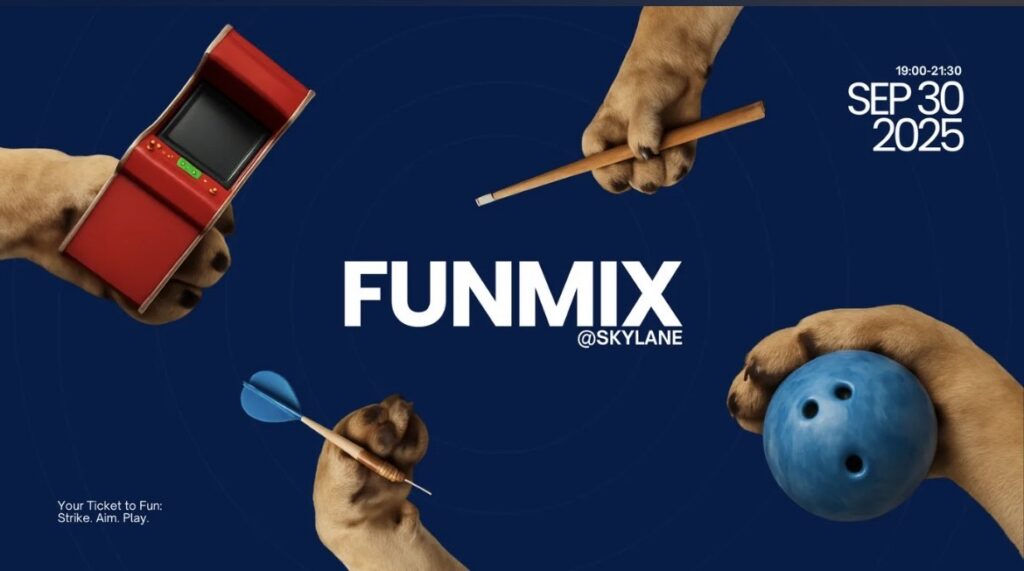 Ready to flex your competitive side? FunMix lands at Skylane from 7–9:30 PM with bowling, billiards, shuffleboard and retro arcade hits packed into two and a half hours of play. Turn up with your own crew of five or jump straight into a team on the night.