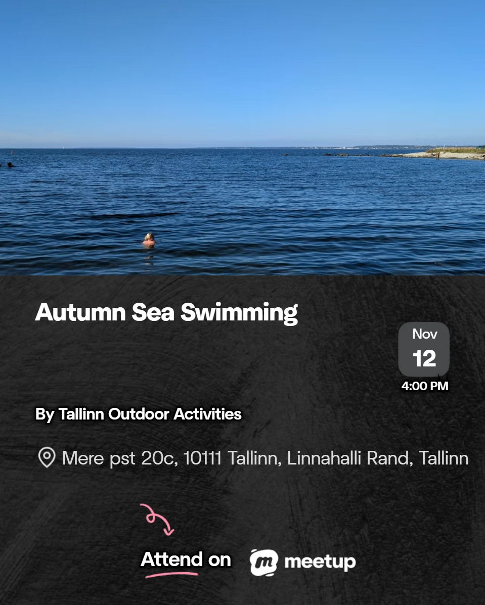 The group meets on Linnahall Beach (Linnahalli Rand) — exact spot here. Don’t forget your towel, something to hydrate with (skip the alcohol, it doesn’t really keep you warm) and swimwear — unless, of course, you prefer to embrace the elements fully.