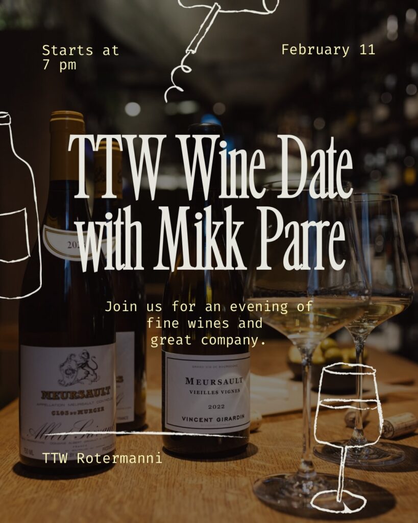 Just before Valentine’s Day, TTW Rotermann is swapping predictable romance for something with a bit more bite. TTW Wine Date invites you to take wine out for the evening – no scoring sheets, no swirling theatrics, no anxious attempts to detect “notes of wet forest floor”. Just listening, feeling and letting the bottles speak for themselves.