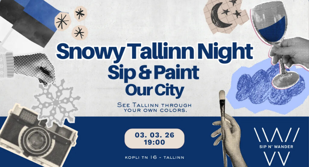 With Estonia’s Independence Day still lingering in the air, this cozy sip and paint evening offers a softer way to celebrate the city we all call home. Inspired by Tallinn’s winter atosphere, the session invites you to slow down, step out of your routine and see familiar streets through different eyes, brush in hand and wine glass nearby. No artistic résumé is required since you’ll be guided step by step.