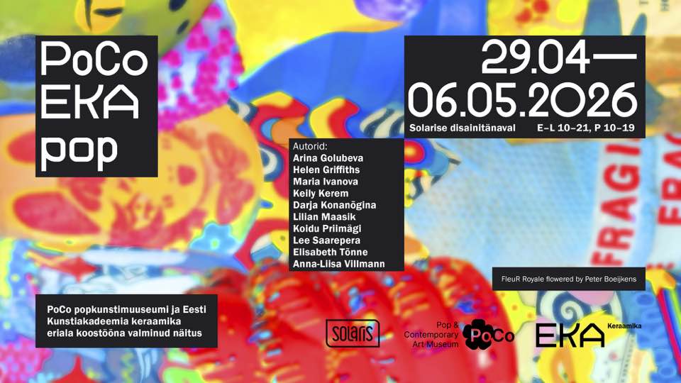 PoCoEKApop exhibition opens at 5pm on the Design Street of Solaris Centre, bringing together the ceramics department of the Estonian Academy of Arts and the Estonian Museum of Contemporary Art in a collaboration that is as fresh as it sounds. Ten young ceramicists were given an open brief: to create an object striking and expressive enough to serve as the museum’s calling card — the first thing to greet a visitor walking in, and the last thing to send them off on their way out. Before picking up their tools, each student immersed in research and a museum visit, finding the artist, period, or theme within pop art that spoke to them personally. The result is ten unique large-scale vases, each filled with floral arrangements by flower artist Peter Boeijkens. Visitors familiar with pop art will find plenty of references and quiet nods to discover, while everyone else will simply find something very beautiful to look at.