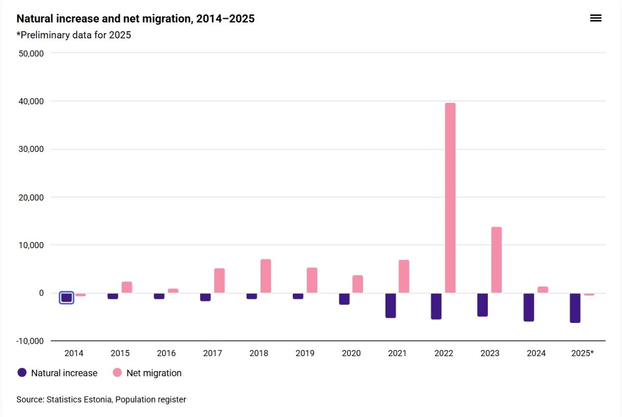 Perhaps the most politically sensitive shift was in migration. For the first time since 2014, more people left Estonia than arrived.