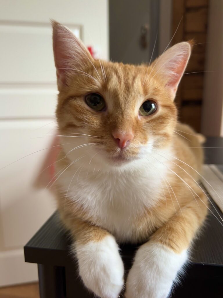 A week later, I was entrusted with a six-month-old kitten – orange and white, with curious eyes and a playful personality. At first, I saw it as a temporary responsibility, a way to help the shelter during my stay. But as the weeks passed, the little cat became part of my daily routine. She greeted me at the door, curled up beside me while I studied, and filled the apartment with warmth and energy.